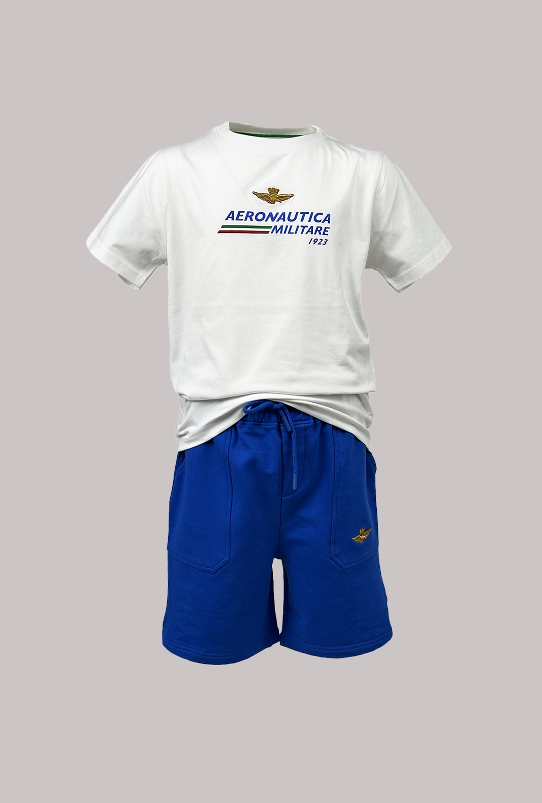 Tag: 2026, 95% CO – 5% EA, Abbigliamento, AERONAUTICA MILITARE, Bambini e ragazzi, Completo, Primavera/Estate, T-SHIRT + BERMUDA WORK
